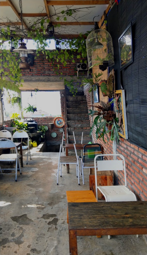 Kafe mungil dengan penataan yang baik. Lebar kafe ini hanya sekitar 2.5 meteran. Ada tiga lantai ++.