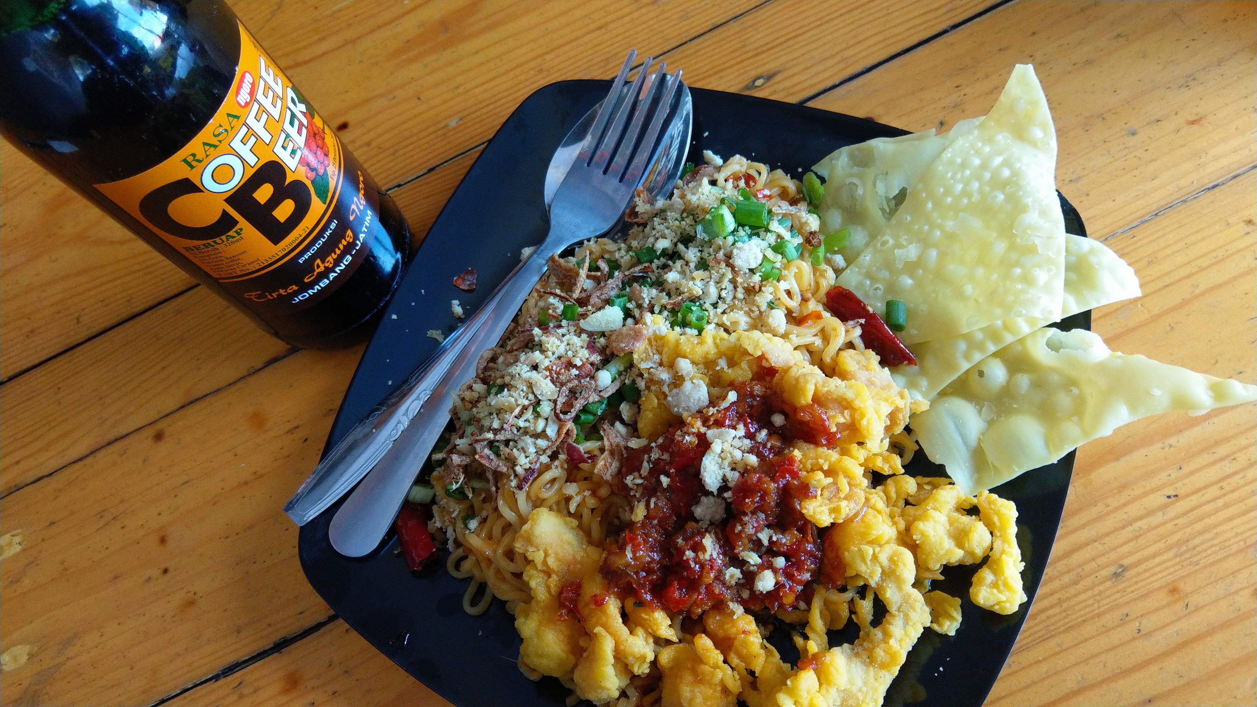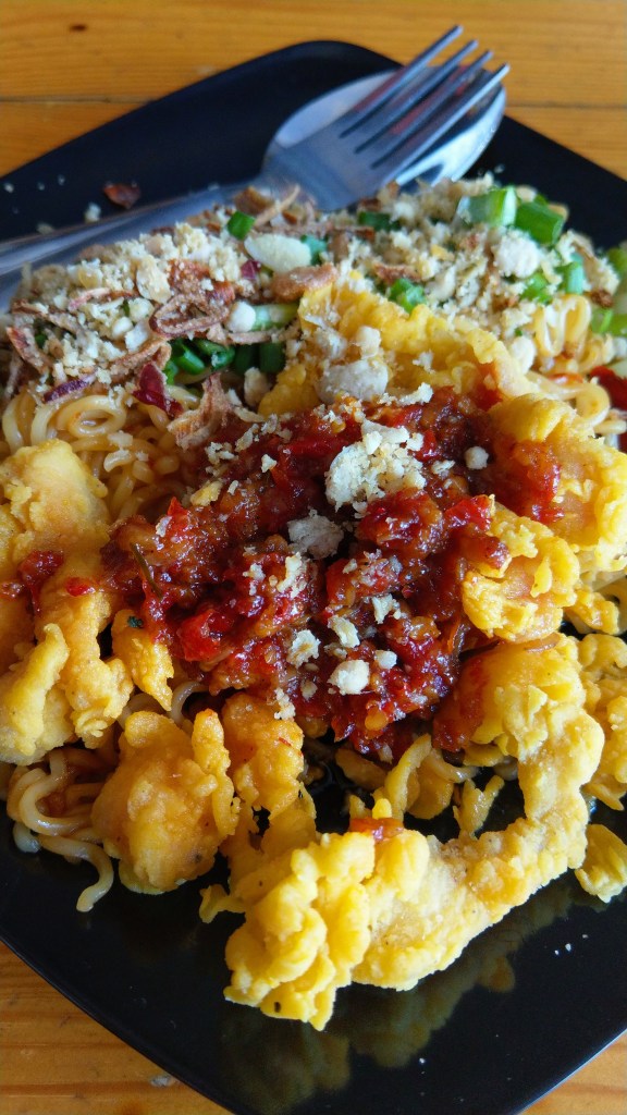 Menu lunayan banyak dan variatif. Banyak menu unik yang tidak pasaran. Yang sempat saya coba menu mie instan goreng plus geprek. Penyajiannya oke banget. Keren platingnya. Rasanya lumayan, di atas standar dikit. Agak kurang dikit di sambalnya yang sepertinya sudah menginap (tidak fresh) Porsinya cukup banyak. Dan harga menu rata-rata cenderung murah.