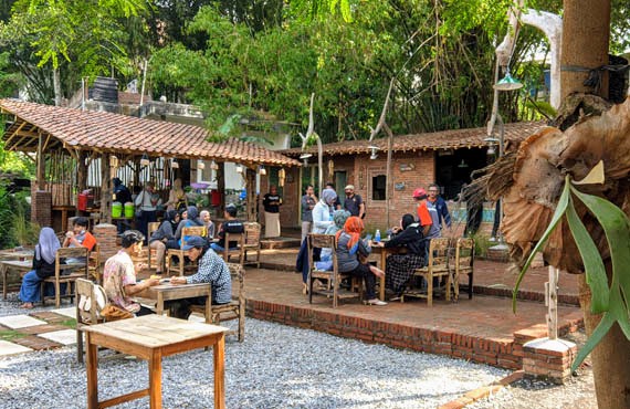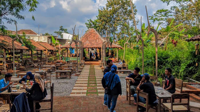 Meskipun tergolong tempat nongkrong yang baru dibuka, tapi di sini secara visual mata Anda sudah akan dimanjakan dengan konsep yang tidak biasa. Elemen-elemen klasik Jawa bertabur mulai dari pintu gerbang hingga mentok ke bangunan dapur dan meja order.